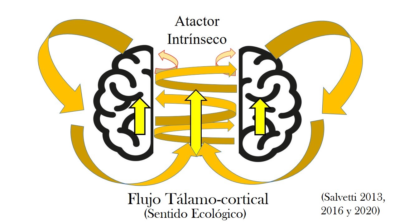 que el flujo neuronal en atractor fluye entre ambos hemisferios cerebrales